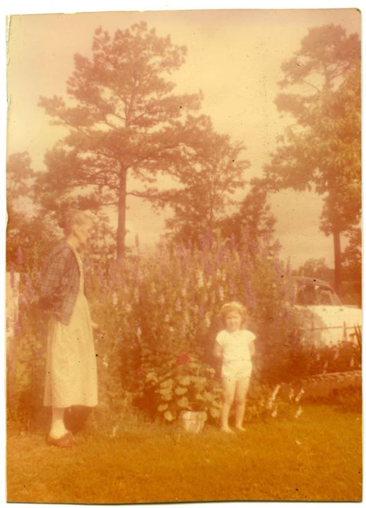 In the garden with Grandma, circa 1957.